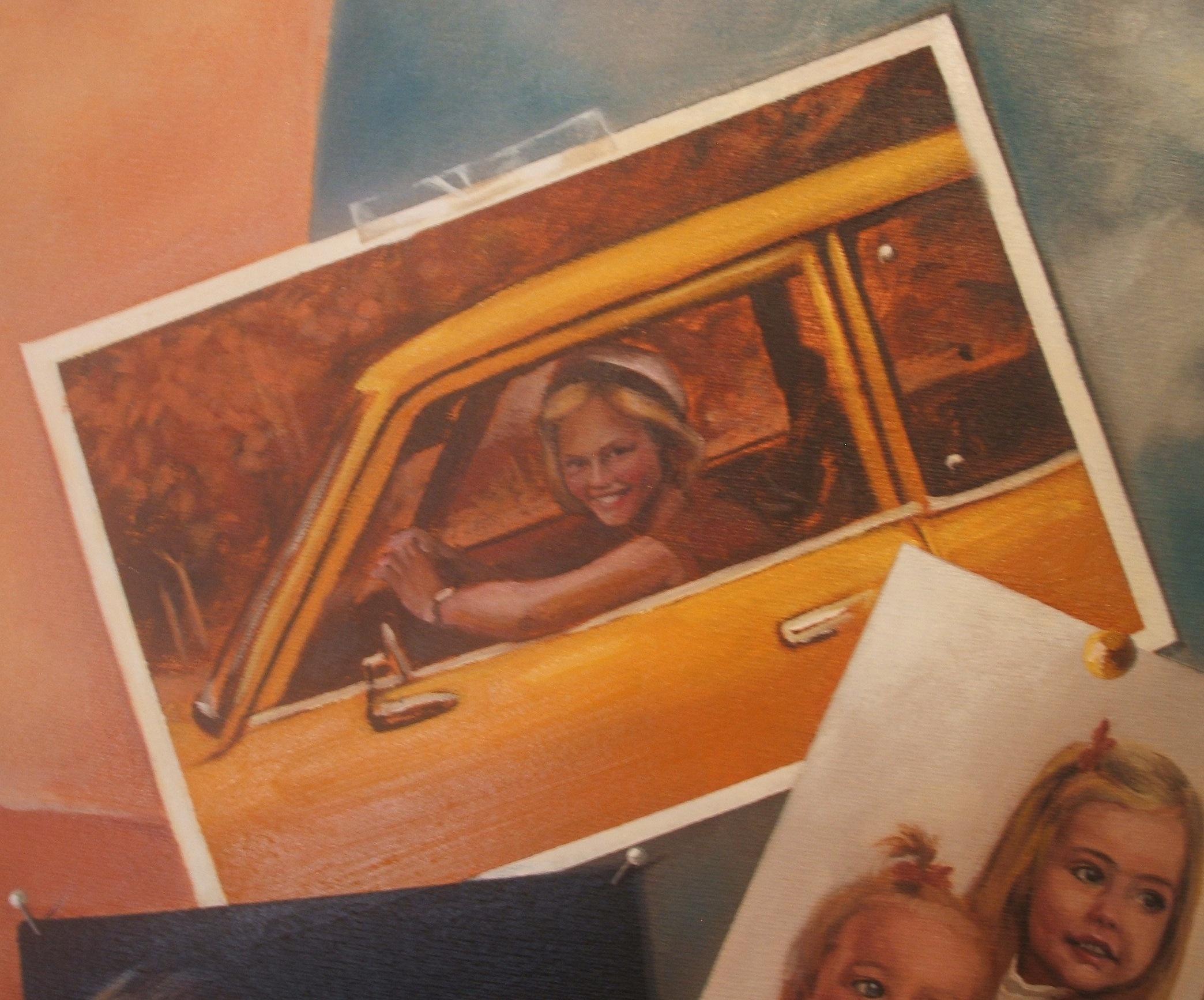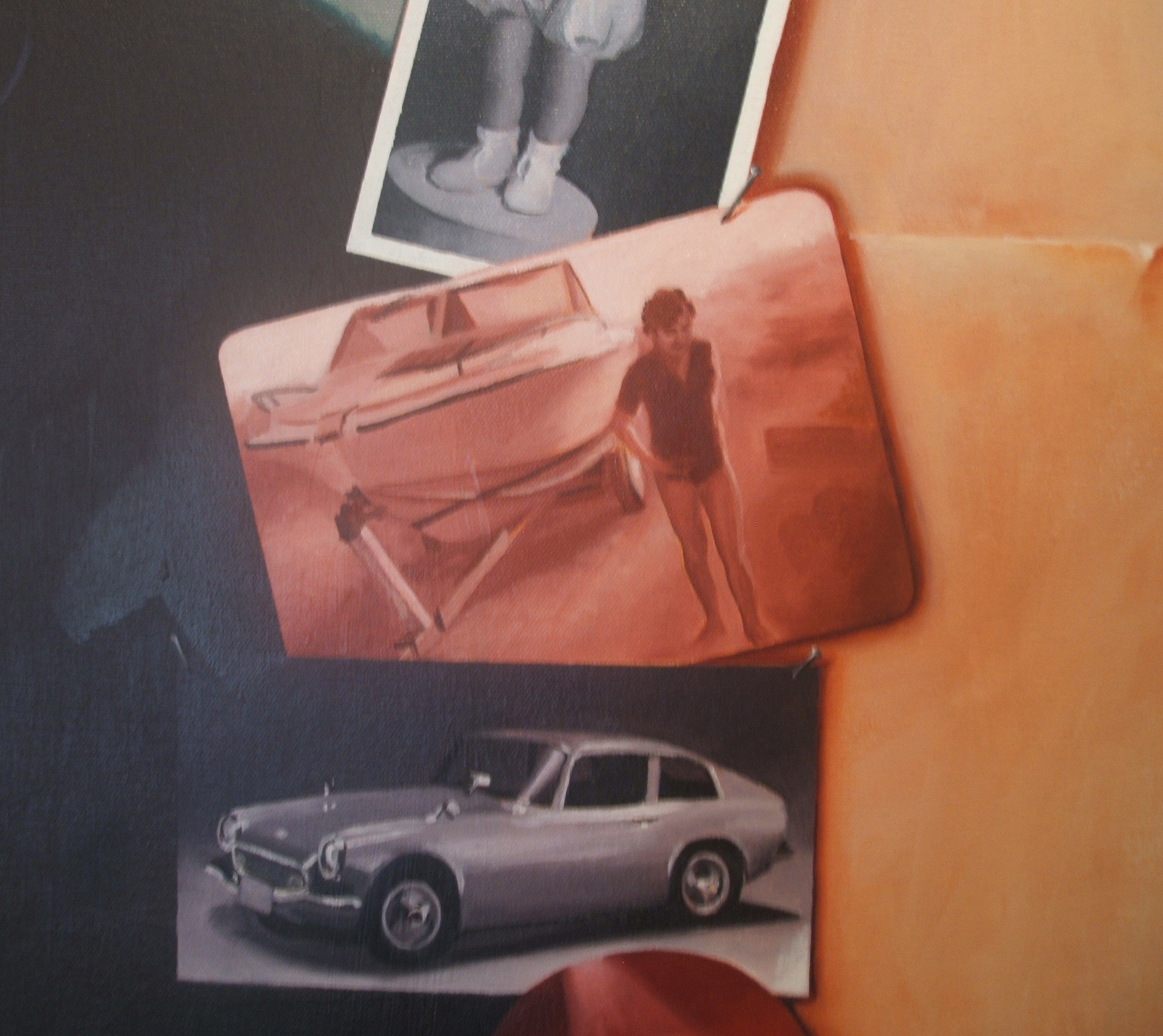 In the painting I have layered images of the photos in 3D over canvas painted to look like folded parchment.